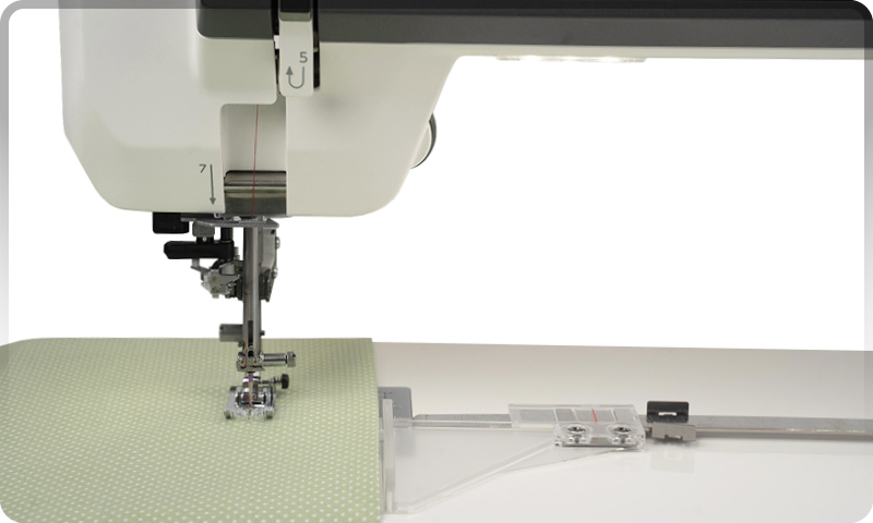 Expand your quilting options and take advantage of the wide array of precision templates on the market for ruler-guided quilting. Engage the Ruler Work foot to safely follow along the guiding edge of precision cut templates. Achieve beautiful and consistent quilting results previously only available to longarm quilters.