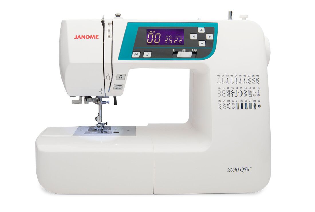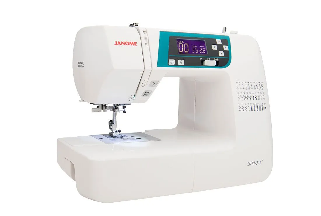 The 2030DC showcases the amazing quality you associate with Janome heritage. It contains a variety of features normally found only on more expensive models- including 7mm stitch width- LCD display with easy navigation- and a a one-hand needle threader. The machine offers 30 built-in stitches and 3 one-step buttonholes. Easy convenience features include a start/stop button- speed control slider- auto lock button- memorized needle up/down- and easy reverse. It is lightweight for easy portability at just 12 pounds.