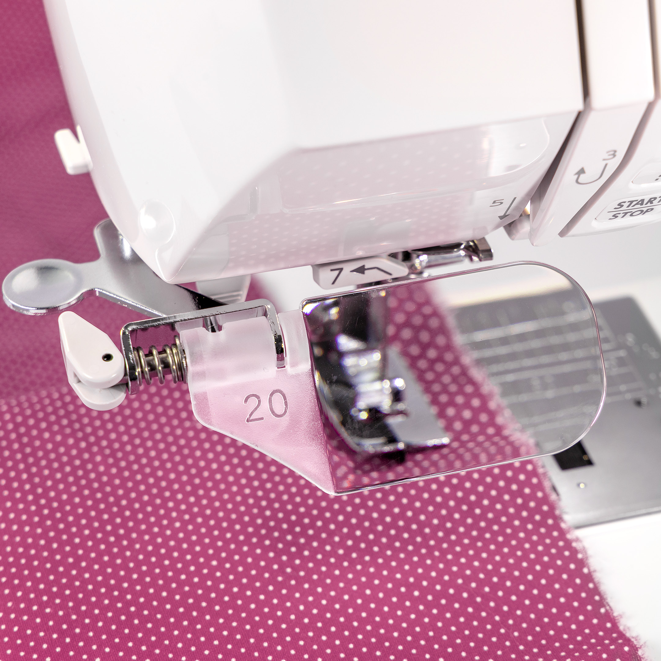 When you need to get a closer view, attach the Optic magnifier to make it easy to see the tiniest detail under the needle. Useful when threading, adjusting the position of the fabric and carrying out detailed work.