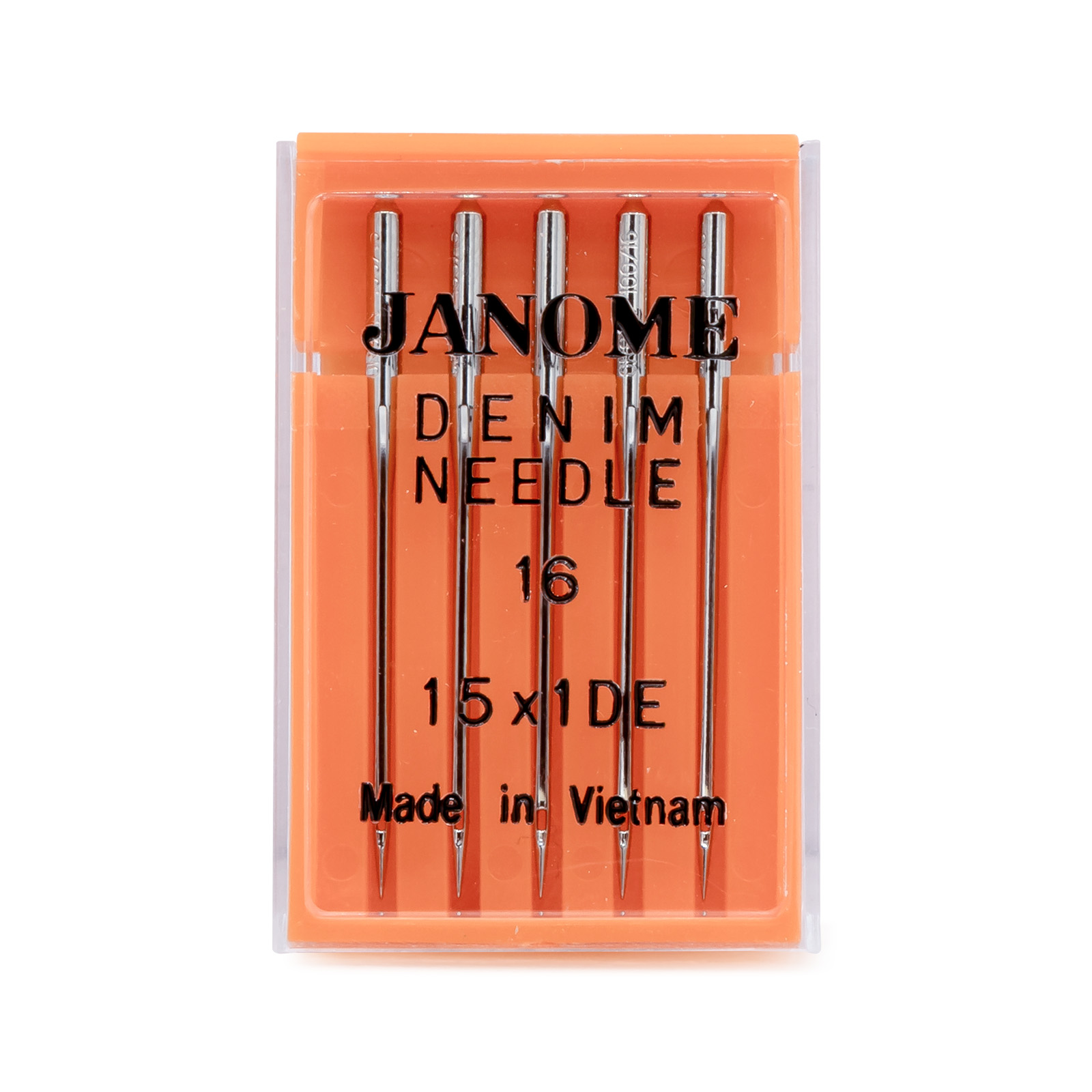 Recommended Uses: With a slender eye and sharp point the #16 denim needle is highly recommended for sewing through thick or tightly woven fabrics like denim, canvas and duck.