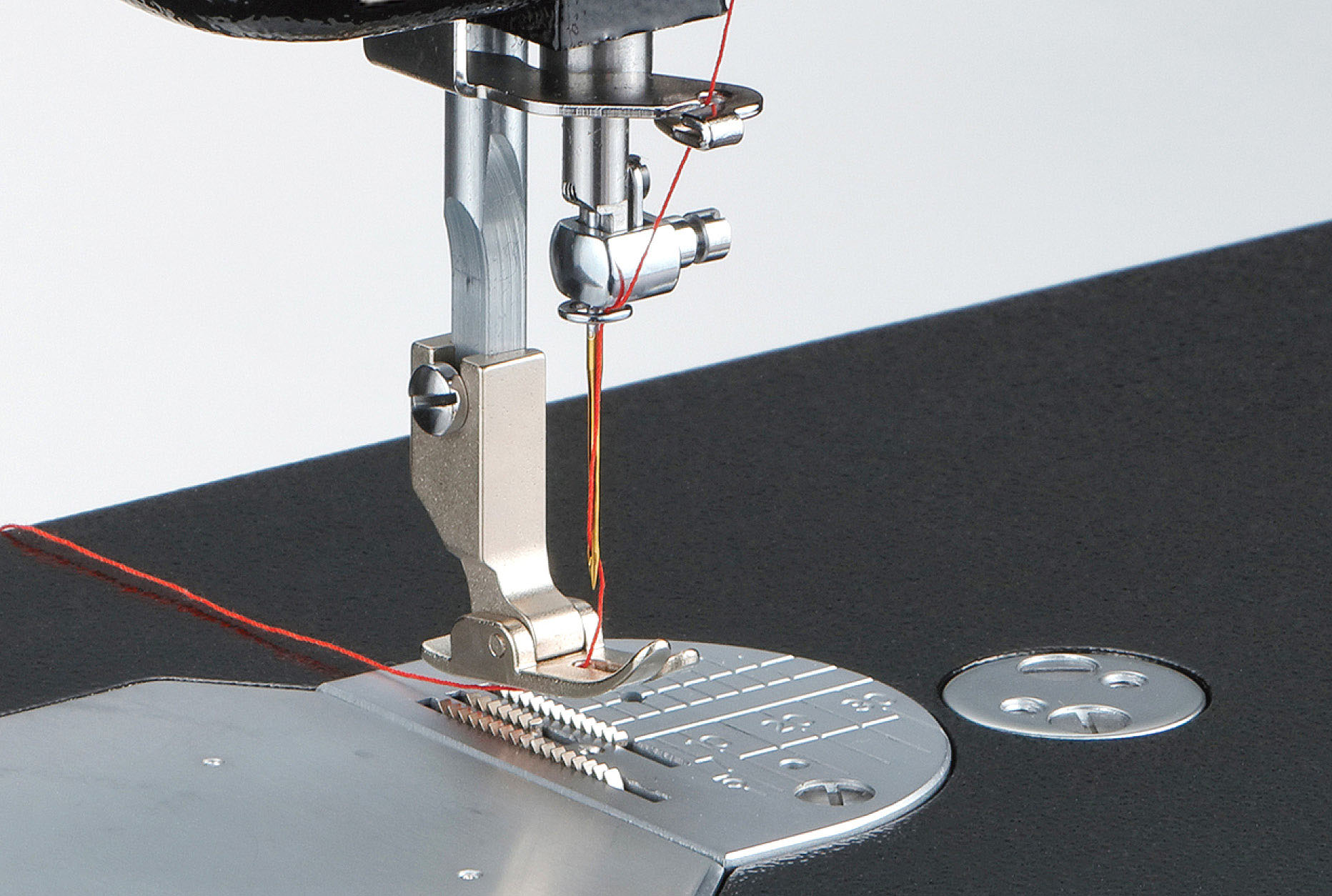 The HD9BE includes a 16 x 24″ wide extension table that is perfect for supporting larger projects. When sewing with average weights of thread, the automatic thread cutter can be accessed via the thread cutter button or the remote thread cutter – making the end of each seam that much easier to finish; heavier weight threads are not a problem either with the new Heavy Weight Thread Guide. Tackle home décor and leather crafts with beautiful seams and top-stitching when using heavy weight threads on denim, canvas and leather.