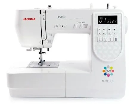 The M50 QDC offers a solid machine with a versatile stitch collection that will see you through most sewing tasks. The abundant selection of accesory feet allows you to take on quilting- fashion or craft sewing with ease and confidence. Hard Cover and Extension Table included!