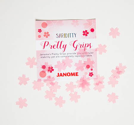 It is important to have right amount of grip when you are doing ruler work! These cherry blossom shaped, glittering decals may be just what you need. Simply stick on to your ruler or template of choice to help you grip your fabric as you work. Easily reposition as required!