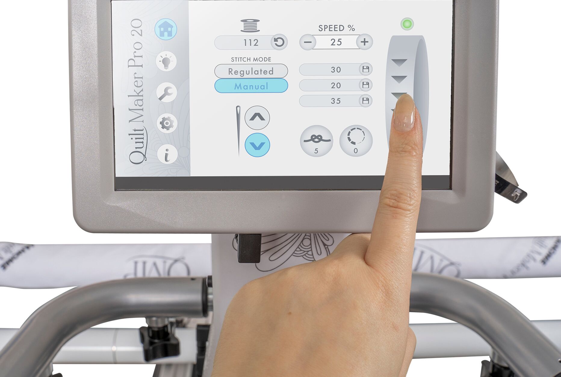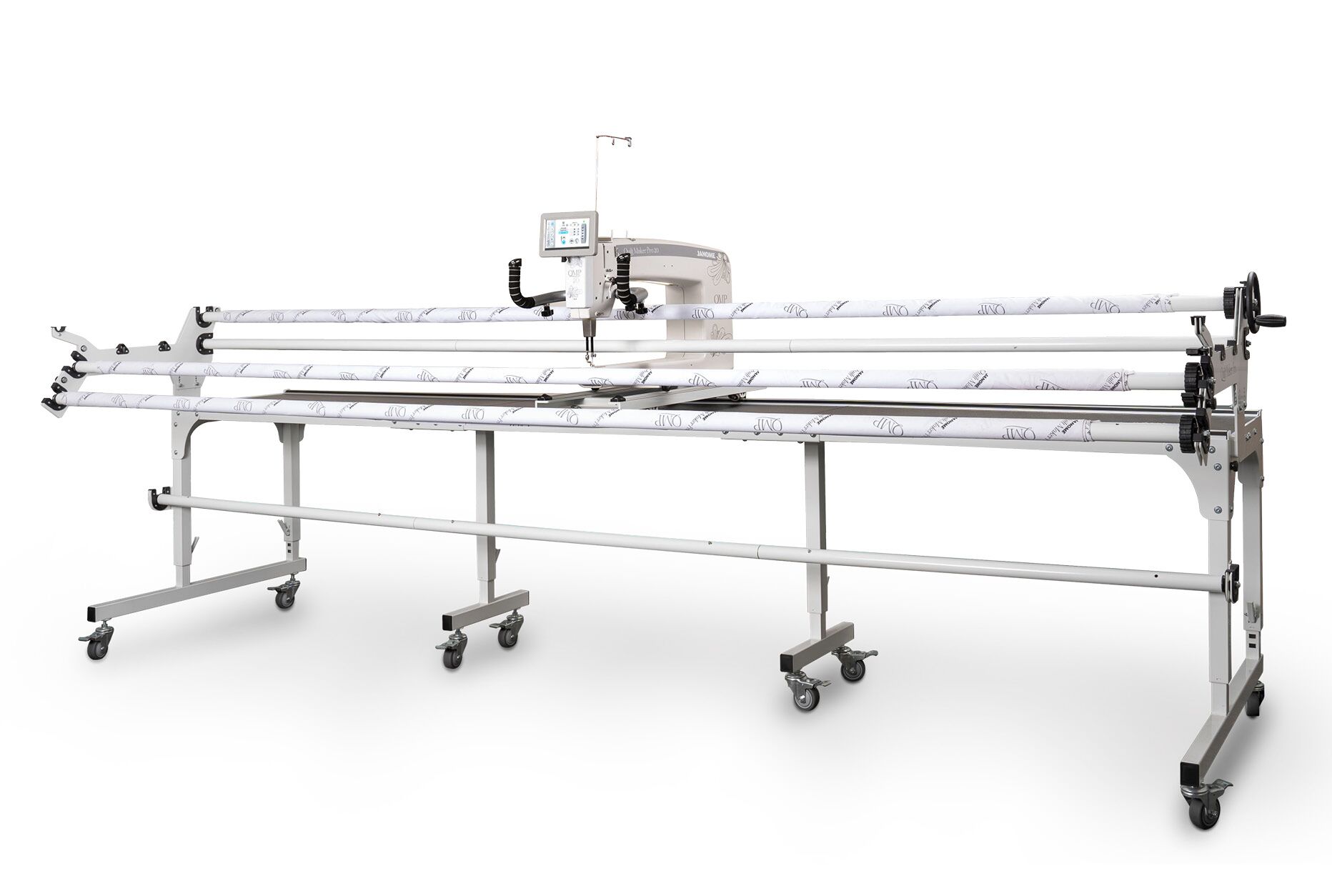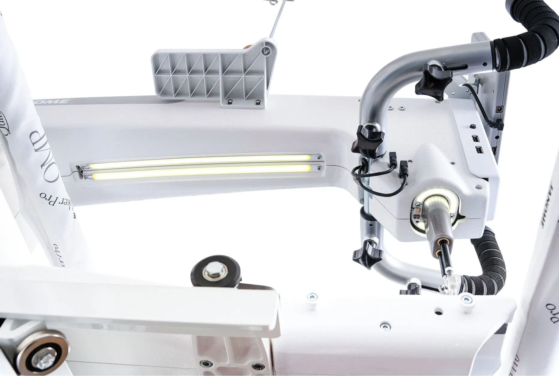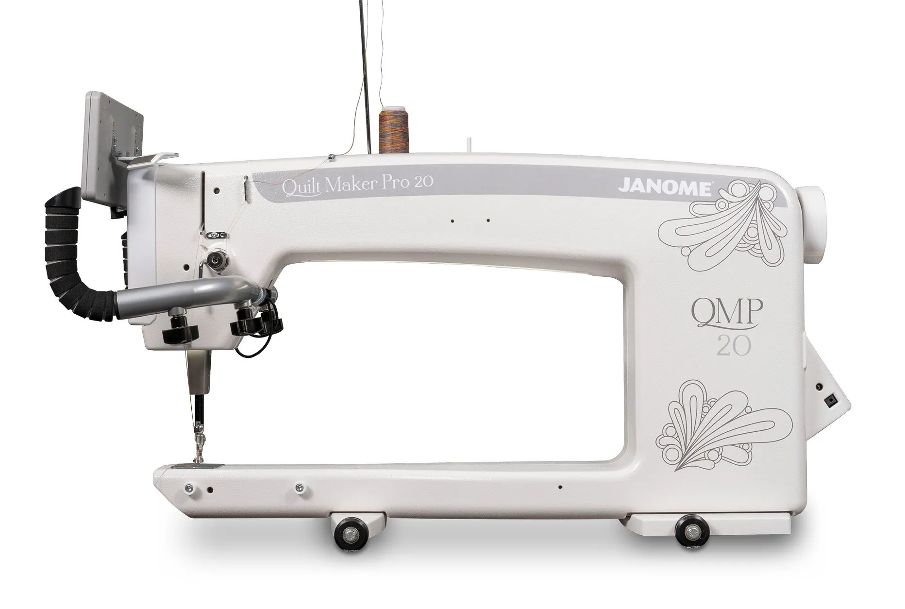 The Quilt Maker Pro is advancing your quilting capabilities. Janome, the leader in innovative products that have changed the sewing industry, offers a long arm format sewing and quilting machine with both precision and cruise stitch regulation. The Quilt Maker Pro 20 offers an adjustable height, customizable handlebar buttons, and speeds of up to 2,500. Includes 12′ frame and bobbin winder.