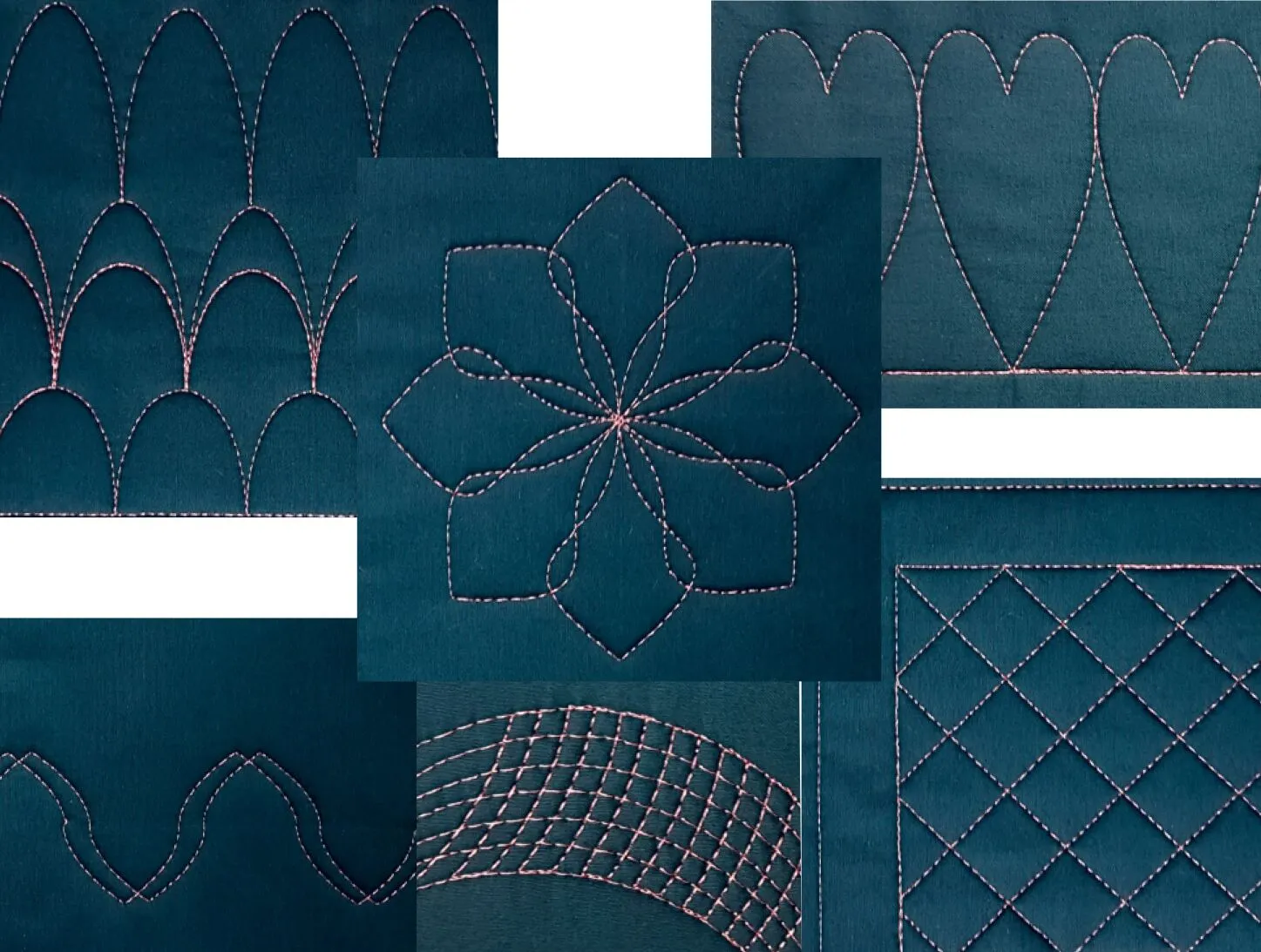 Quilt beautiful borders and more by placing hearts along a base line of stitches. The space between the hearts can be lengthened or shortened to space the hearts apart or overlap them.