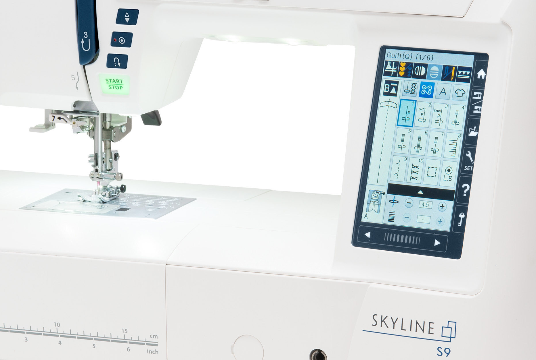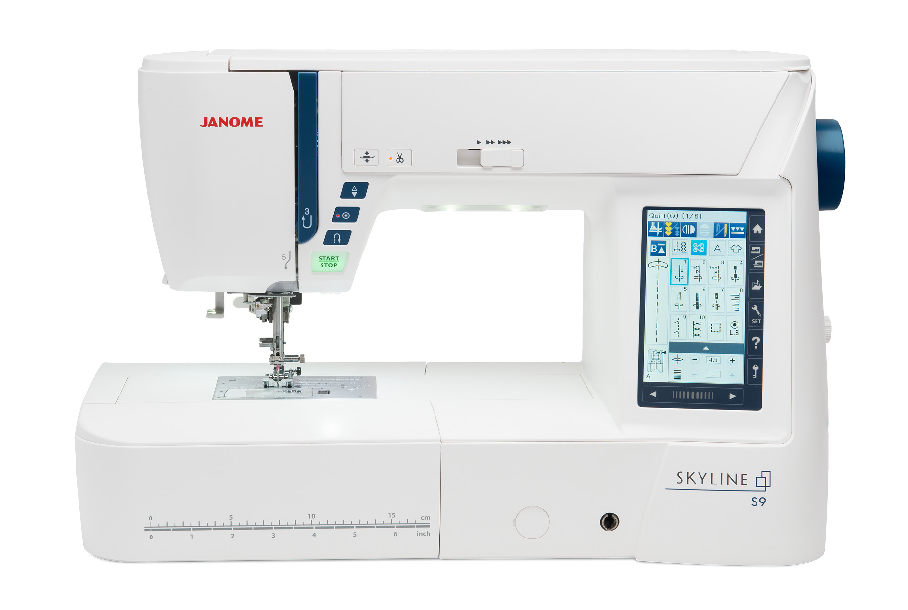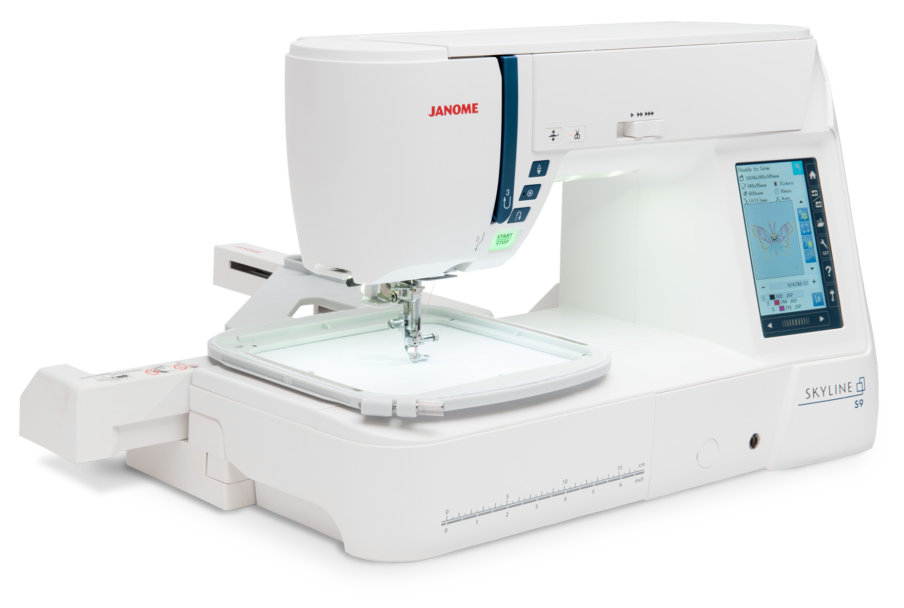 From sewing to embroidery the choices seem limitless with up to 250 embroidery designs (up to 6.7 x 7.9″), including 40 designs by Anna Maria Horner along with 300 stitches. The Skyline S9 provides a full suite of powerful editing capabilities and navigating these great features is easy with the colour touchscreen. Go wireless and send designs directly from an iOS or Android device. In addition, there are five amazing iPad app to make embroidery, even better. Click the links to download S9 compatible apps AcuDesign, AcuEdit, AcuMonitor, AcuSetter and AcuSketch apps.
