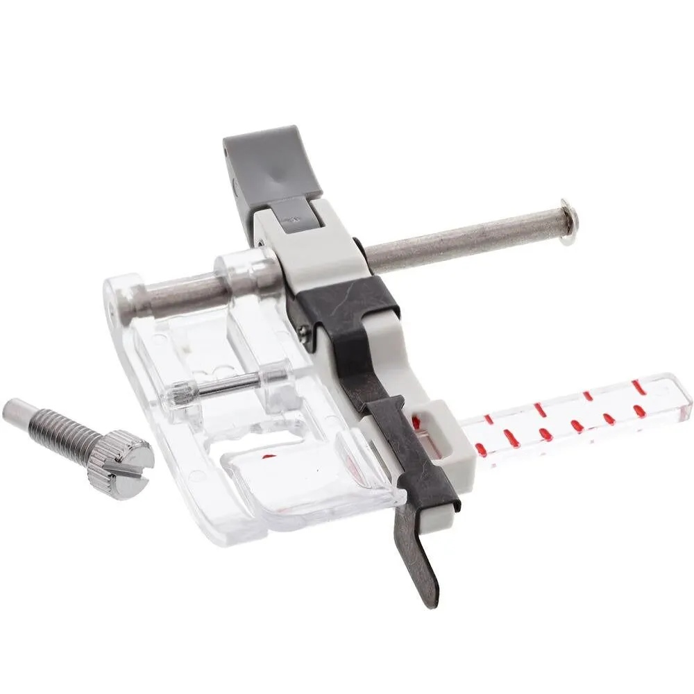 Edge stitching could not get any easier with the Sliding Guide Foot! You can adjust the flange to sit up to a full inch away from the edge of the foot in seconds and create perfectly straight hems every time. The guide can be moved freely and easily by just lifting the lever in the back of the foot, instead of having to mess with an annoying screw. The clear markings make certain you know exactly where you want your foot to go.