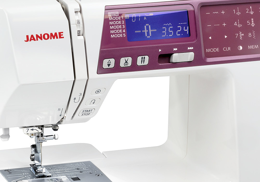 Sewing drapes and other long straight seams is so mch easier when you don’t have to worry about the foot control! Located close to the needle so you don’t have to move your hands, the Start/Stop button lets you relax your pedal foot. At the beginning of a seam, simply press and hold to slowly accelerate up to your set speed. At the end, press and hold to slow down and stop, a Janome Exclusive.