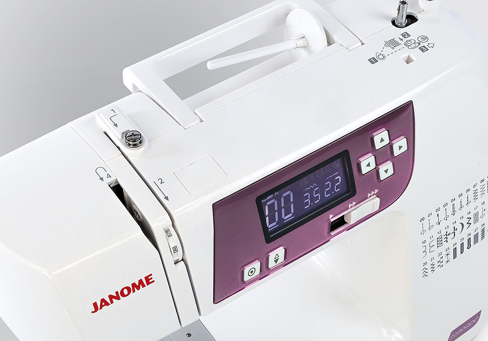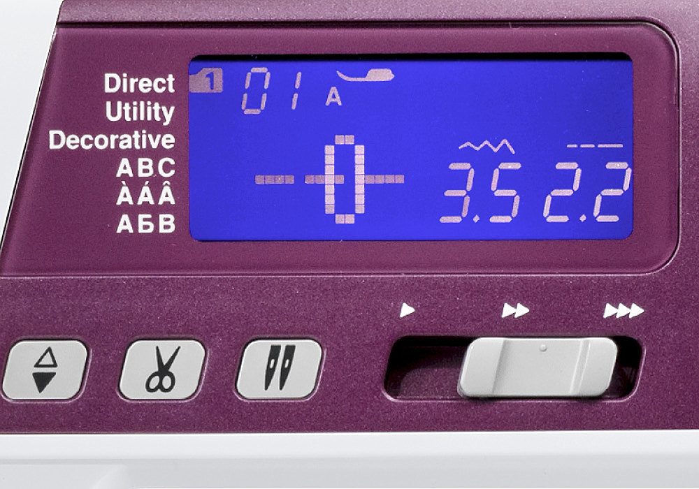 Intuitive navigation allows you to quickly locate your stitch choice and setting. The large, glow LCD display gives stitch and sewing information that’s easy to read at a glance. Spend less time scrolling and more time sewing.