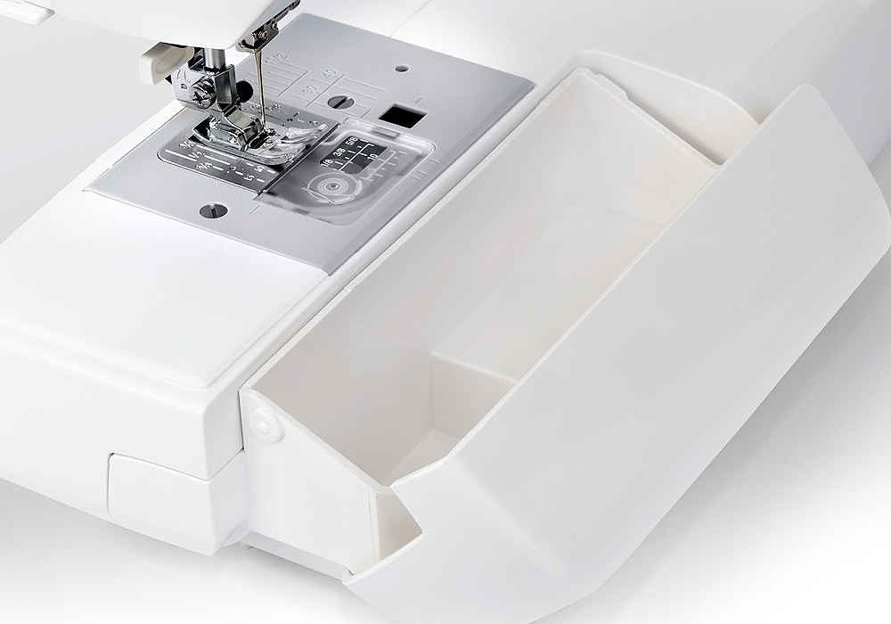 Store all your accessories in one easy-to-reach location. Removes to reveal the extra long free arm.